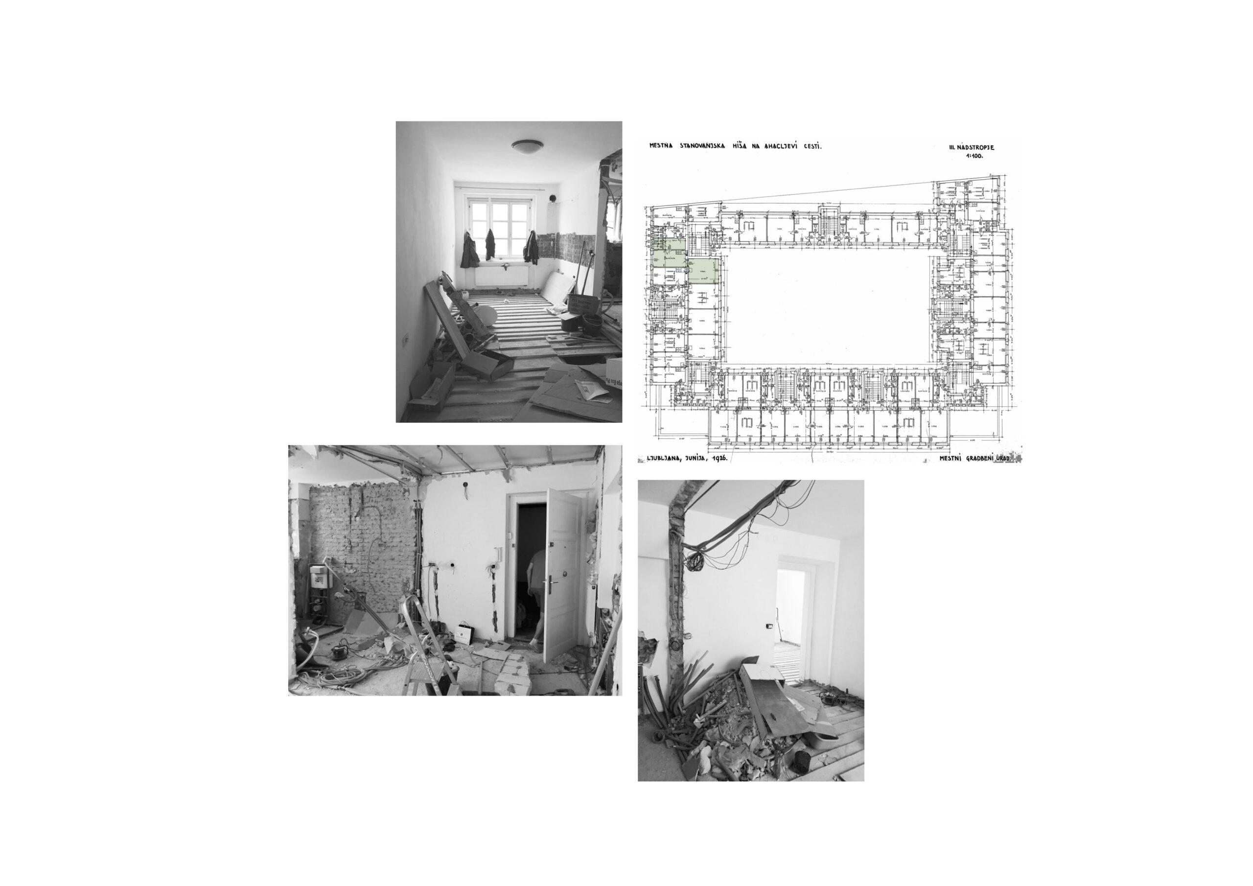 This apartment renovation project took place in the city center of Ljubljana. This apartment is a part of the historic building dating back to 1926. Our aim was to modernize its living conditions and accommodate the needs of contemporary living. The transformation of the existing layout was crucial to fulfil the current lifestyle demands. The former kitchen was transformed into a cozy sleeping area, while the spacious bedroom was transformed into a versatile living room/workspace that also served as a space for socializing, complete with a screening projector. The open floor plan was created by removing a wall, and the addition of multifunctional maple veneer furniture along the perimeter of the apartment allowed for maximum use of the limited 48 square meter space, providing comfort and versatility for the single inhabitant.